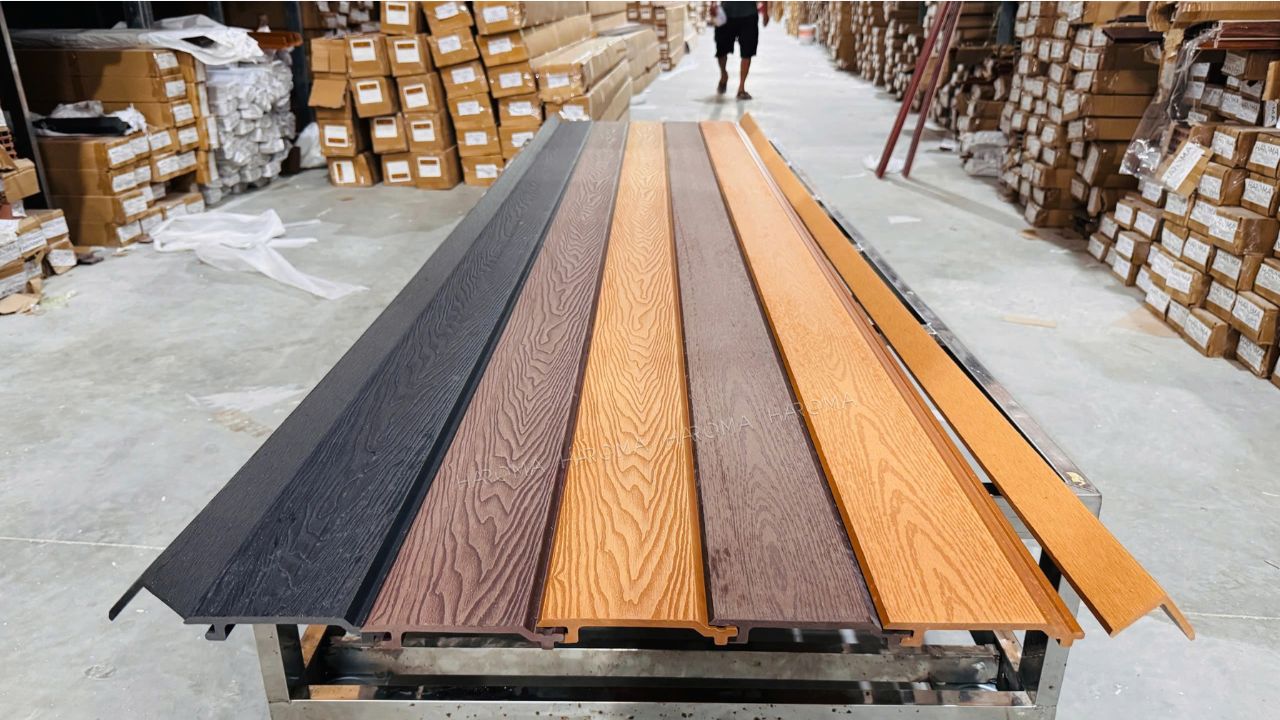 Tấm ốp ngoài trời hay còn gọi là tấm ốp gỗ nhựa ngoài trời Haroma, dòng vật liệu gỗ nhựa composite chuyên sử dụng để ốp trần ốp tường trang trí ngoại thất. Tấm ốp gỗ nhựa có thành phần cấu tạo từ hạt nhựa kết hợp bột gỗ tự nhiên. Thiết kế nổi bật với 3 tông màu chính là màu gỗ vàng, màu nâu cafe, màu đen. Thiết kế bề mặt vân gỗ 2D và 3D. Với đặc điểm này, tấm ốp ngoài trời có khả năng chống ẩm mốc, chống cong vênh, mối mọt.